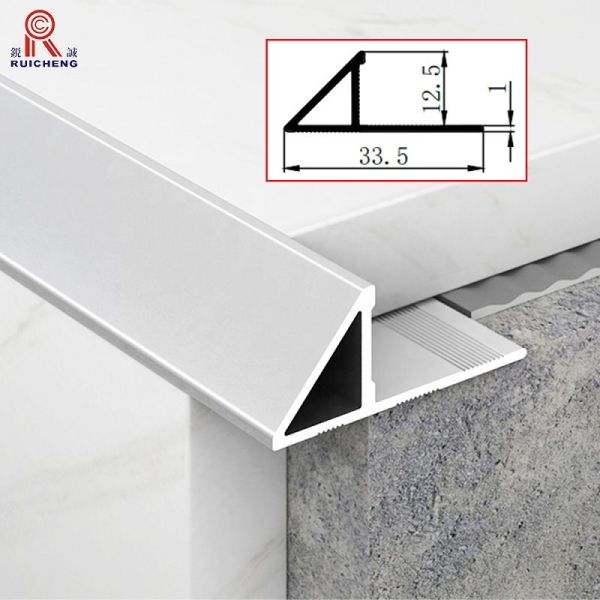 Triangle corner aluminum tile trim are aluminum profiles that deal with the right-angle edges of ceramic tiles or marble. The triangular aluminum profiles can protect the edges of tiles or strong stones from damage, and avoid or reduce damage caused by bumps.In the treatment of columns in many high-end decorations, wall tiles or marble are usually attached. In order to make the floor, wall and column more smooth and beautiful, we usually use triangle corner aluminum tile trim to decorate. The column is unstable after being pasted with marble, it is easy to fall off, and it is easy to collide and cause damage. At this time, we need triangular tile aluminum profile decorative strips to solve this problem. There are many other situations, we can all use aluminum edge trim for edge trimming.